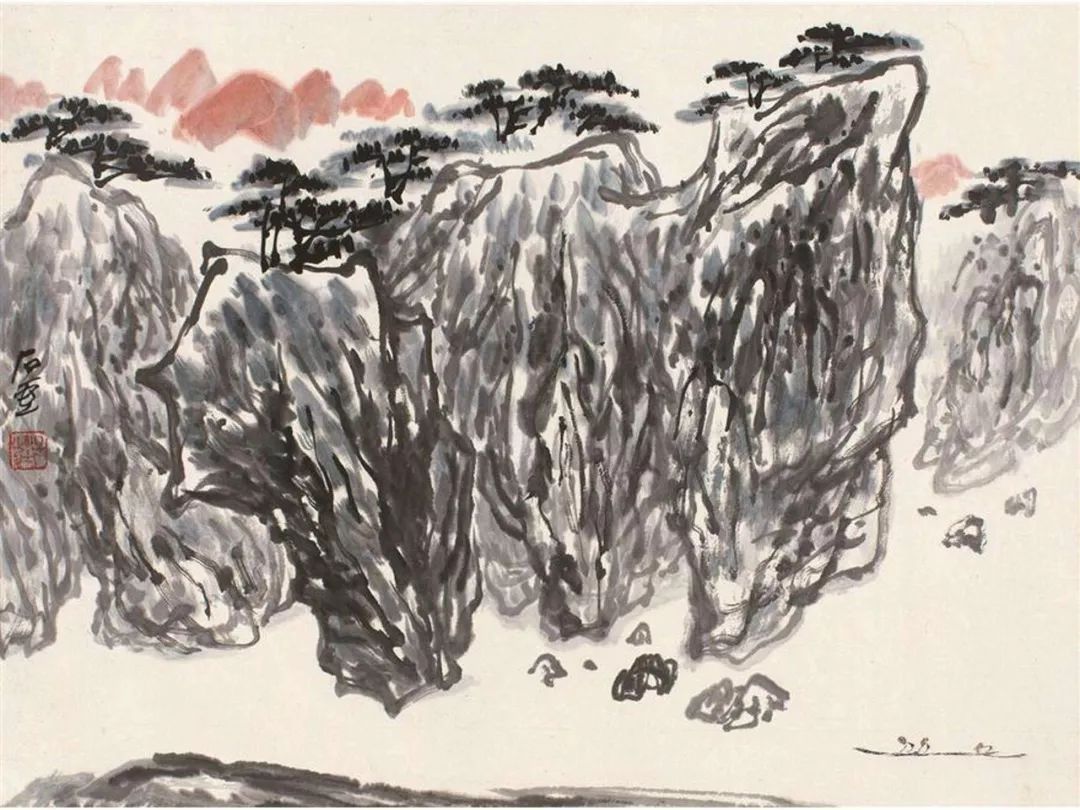 画山一般的次序是先画后染,也不错先染后画。后者是花草画法,我用之于画山水。
